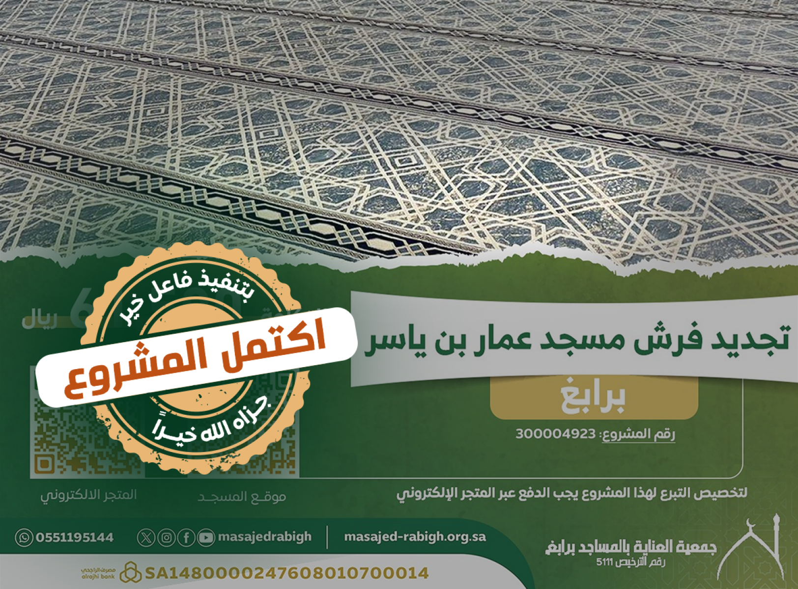 شاركنا الأجر في تجديد فرش مسجد عمار بن ياسر برابغ
